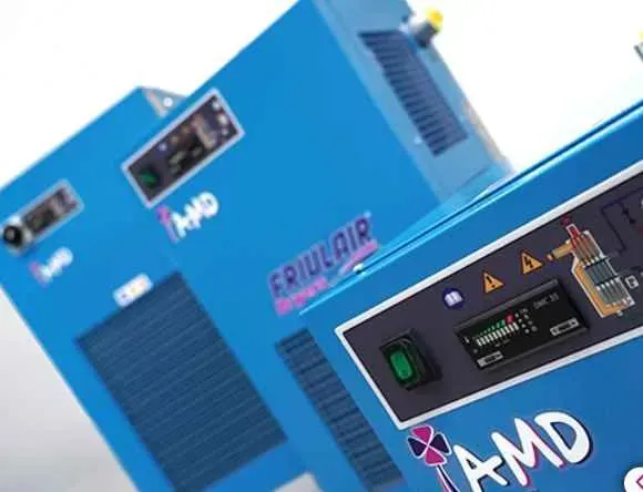 Gli essiccatori a ciclo frigorifero AMD ORIGINAL (Aluminium Modular Dryer) nascono da una combinazione di soluzioni tecniche che hanno segnato l’inizio di una nuova fase per l’essiccatore a refrigerazione tradizionale. Rappresentati simbolicamente da un quadrifoglio, gli AMD offrono le quattro caratteristiche indispensabili relative al trattamento dell’aria compressa: