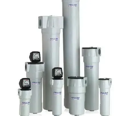 La qualità dell'aria compressa richiesta secondo lo standard ISO 8573 può essere raggiunta con 5 diversi tipi di elementi filtranti (P, R, M, S e A) i qual devono essere installati nell'alloggiamento del filtro. Gli scaricatori di condensa interni ed esterni opzionali si utilizzano per scaricare efficacemente la condensa dall'alloggiamento del filtro.